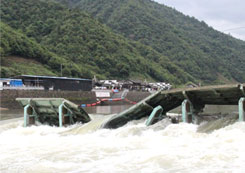 • 液壓壩操作靈活方便 可以任意放倒某一塊壩面